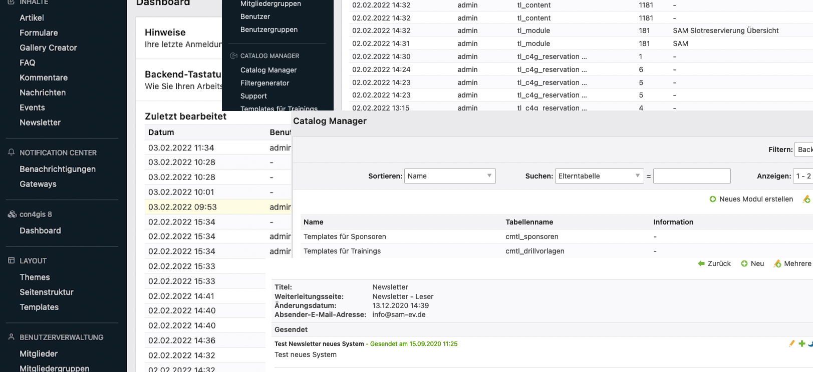 Das gilt für den Frontend Bereich (also diejenigen Elemente die der geneigte Besucher zu sehen bekommt), aber auch für den Backened Bereich. Der Backend Bereich ist dem Betreiber und dem Administrator vorbehalten. Hier werden Einstellungen vorgenommen, Mitglieder und Benutzer verwaltet, Newsletter definiert und versendet und einiges mehr.